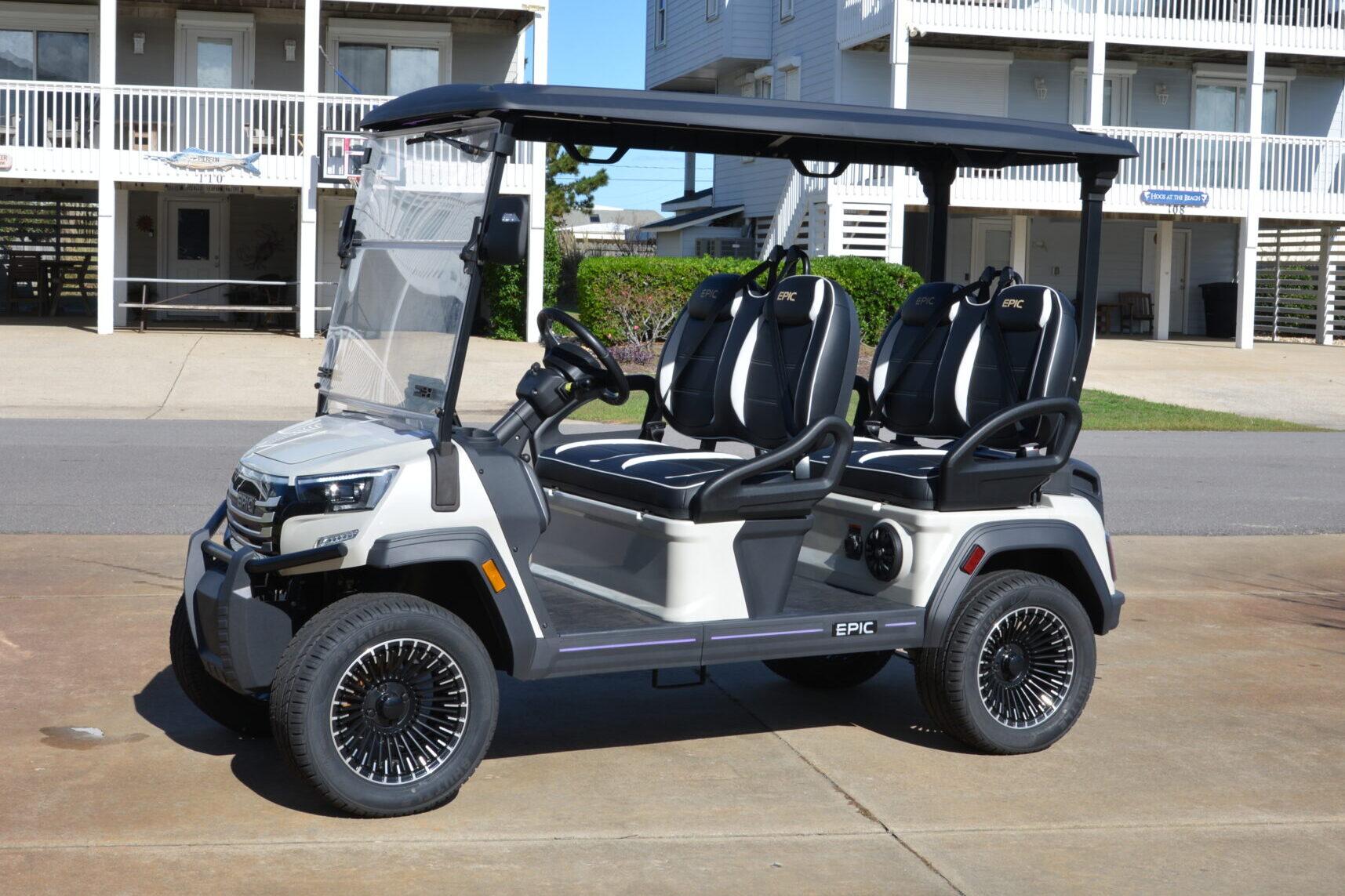 Whether cruising the fairways or driving through the neighborhood, the EPIC E40FX delivers style in spades. Built for Power and Performance Under the hood, the EPIC E40FX is powered by a robust 6.3kW AC motor paired with a 51V/105Ah ECO lithium battery. This combination provides: